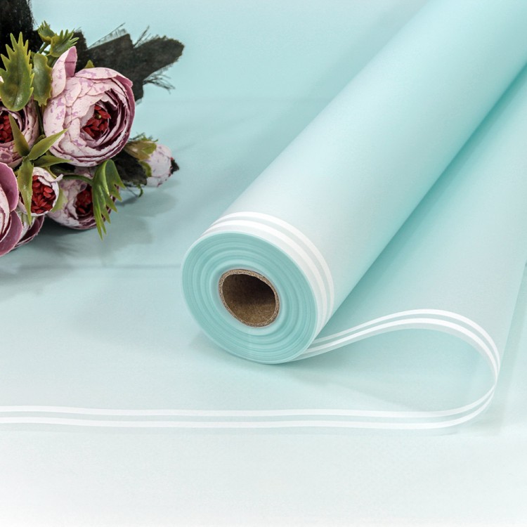 Плёнка 58см 800г матовая с двойной белой полосой 55мкм Голубой 1/12 Арт: 1824/635